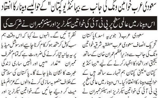 خواتین ونگ کی جانب سے وزیر اعظم عمران خان کے ساتھ یکجہتی اور اتحاد کا اظہار کرنے کے لیے “بیہائنڈ یو کپتان”یعنی کپتان ہم تمہارے ساتھ ہیں کے حوالےسے ویبنار کا انعقاد کیا۔ اس ویبنار میں عالمی سطح پر پی ٹی آئی کی خواتین سیکرٹریز اور سینئر ممبران نے شرکت کی۔ مہمان خصوصی اور کلیدی مقرر ایم این اے شاندانہ گلزار خان تھیں۔